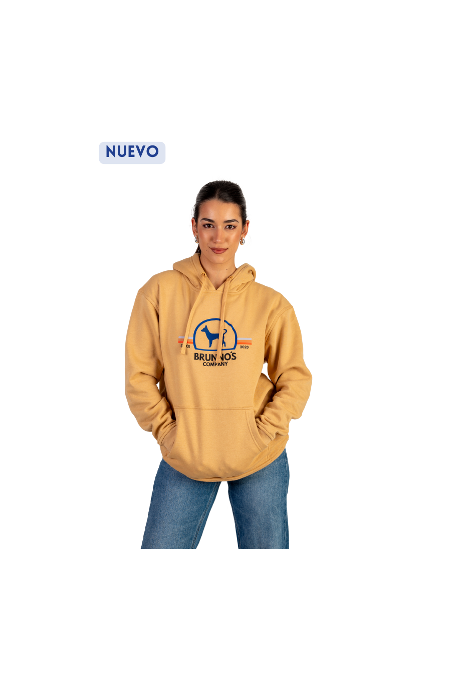 Sudadera Brunnos unisex con print central colorido circular, capucha ajustable con cordón a tono y en el centro perrito básico. Confort urbano que nunca falla.
