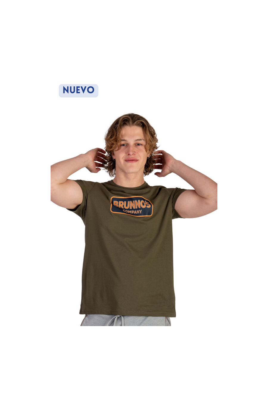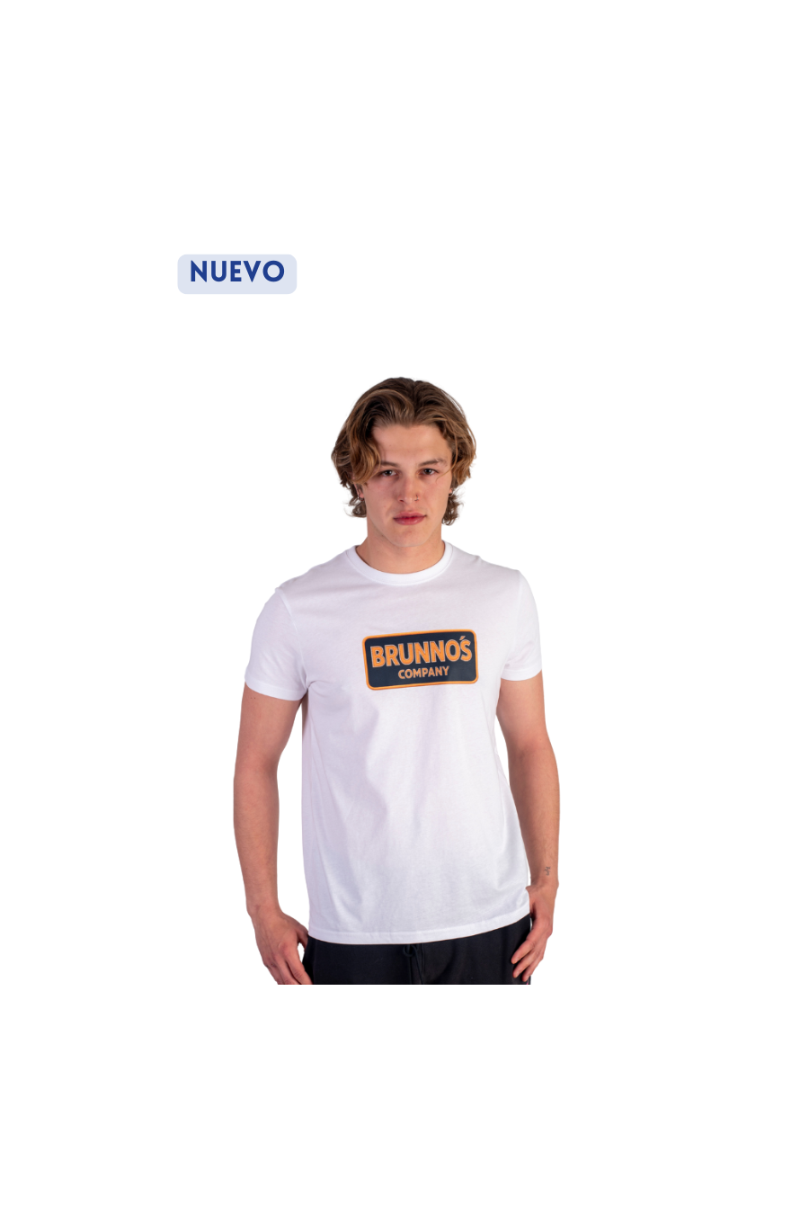 Camiseta unisex básica con print "Brunnos" efecto parche en el pecho.